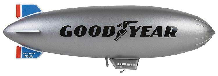 Good luck! Model of a blimp type GZ-20a from the legendary Goodyear fleet, with grey gondola and grey hull featuring the Goodyear logotype as well as blue stabilizing fins.