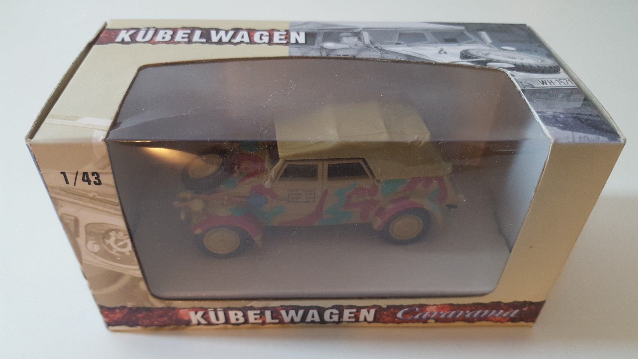 - Brand new 1:43 scale diecast car model of Volkswagen Kubelwagen Soft Top K Type 82 Tan die cast car model by Cararama.