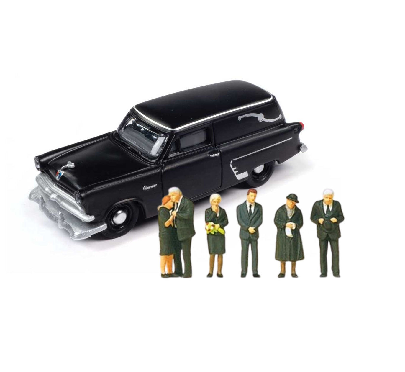 Includes 6 hand-painted figures & Ford Hearse funeral car