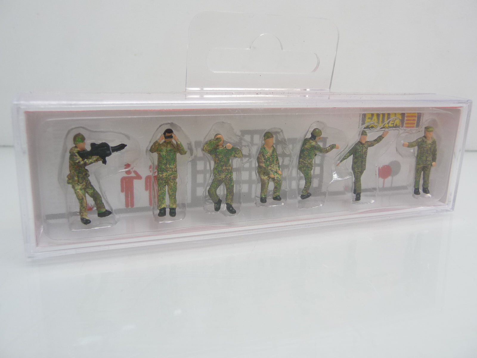 Bring your HO scale model scenes to life with the Faller 1/87 HO Scale Soldiers in Training Miniature Handpainted Figures Set. This set features 7 dynamic figures, each meticulously handpainted to depict soldiers in various training exercises. From precision drills to tactical maneuvers, these highly detailed miniatures add realism and depth to your military-themed dioramas. Crafted with exceptional attention to detail, these figures are perfect for hobbyists seeking to create engaging and authentic training scenarios. Elevate your model scenes with the precision and quality of Faller's handpainted miniatures.
