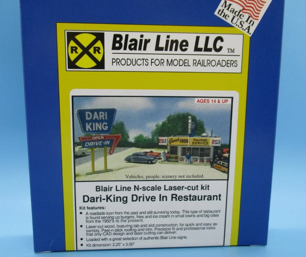 Blair Line is located in Carthage, Missouri, and was founded by Dale Rush in 1993. Blair Line manufactures laser-cut structures, billboards, and signs for business, advertising and highway, wood trestle kits, and graffiti decals for modern trains and structures.