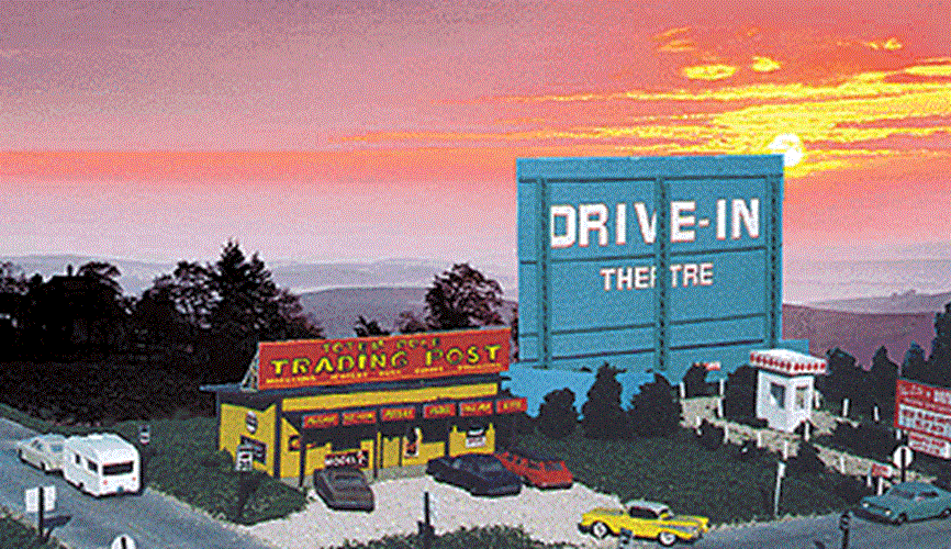 Recall the nostalgia of the 1950s, or commemorate the waning days of this entertainment phenomenon by placing a drive-in theater in the outskirts of your layout's community. Each kit includes a screen tower, ticket booth, signs and fences constructed from prepainted plastic. Detail your outdoor experience with included extras like three marquee signs and 17 interchangeable movie signs, featuring 32 movies from the 1940s to today.