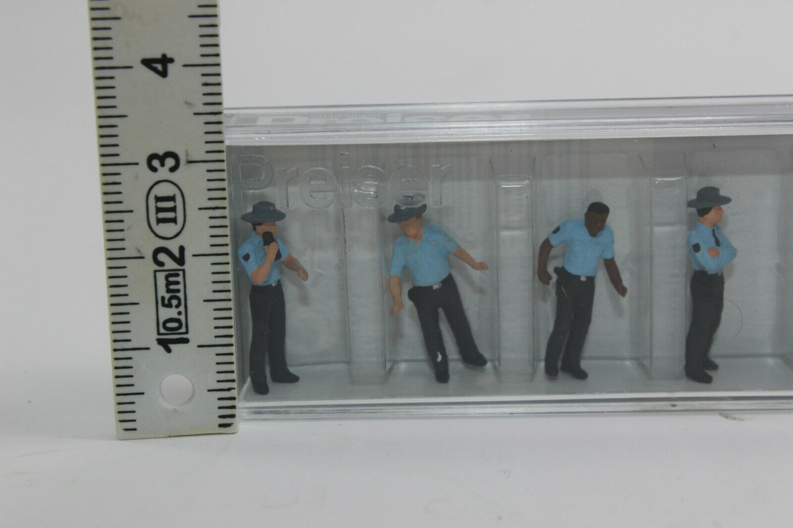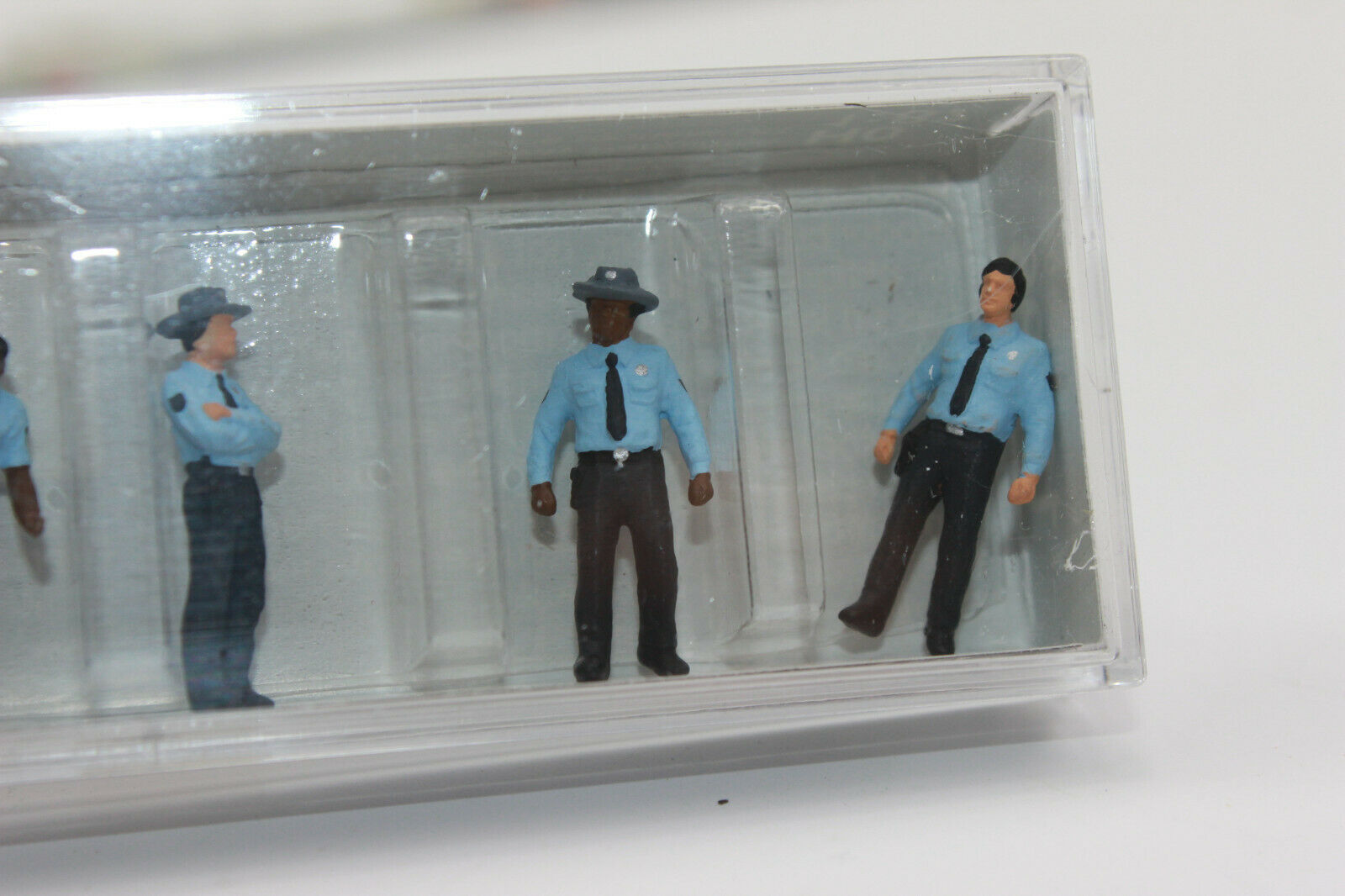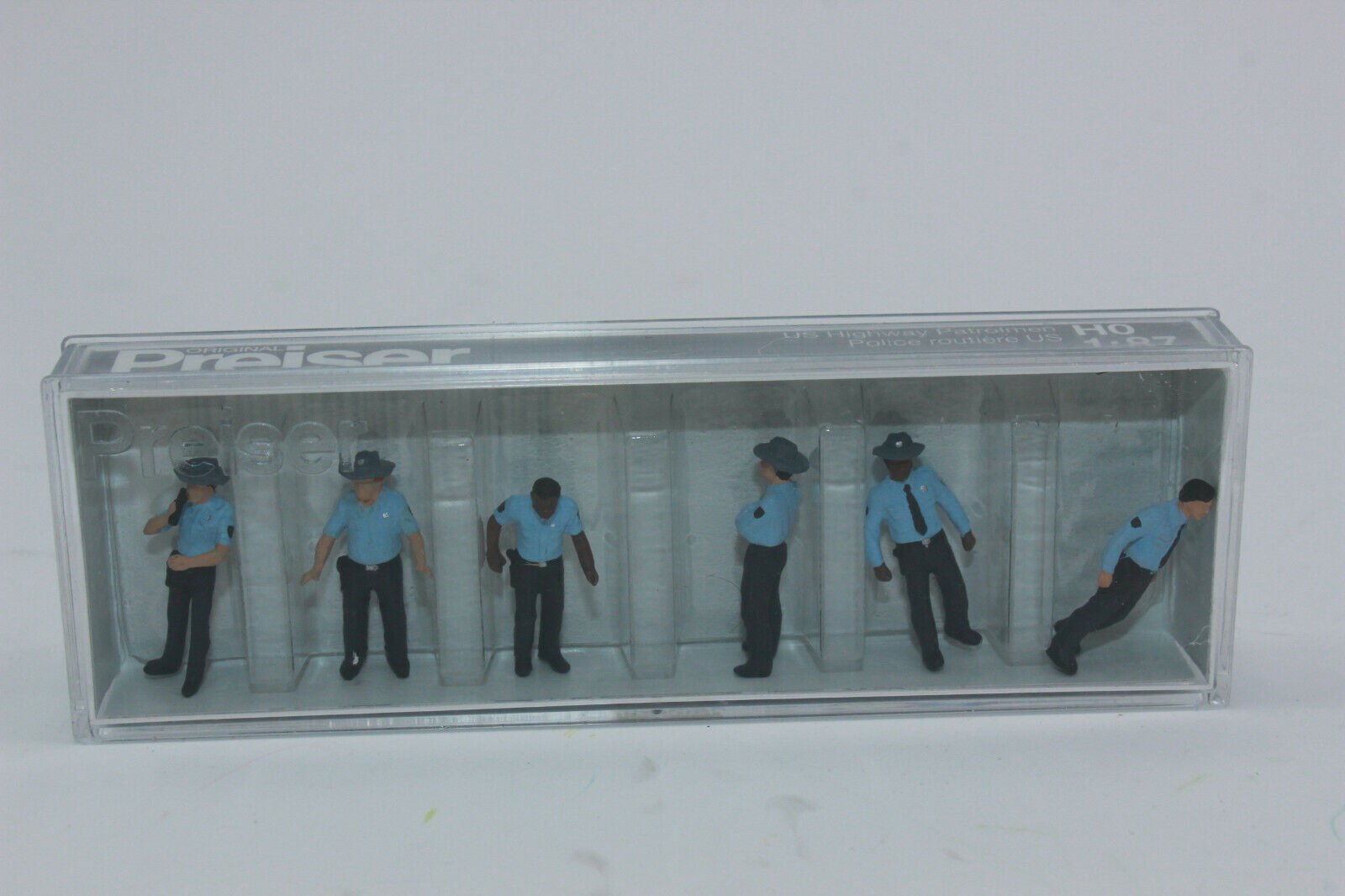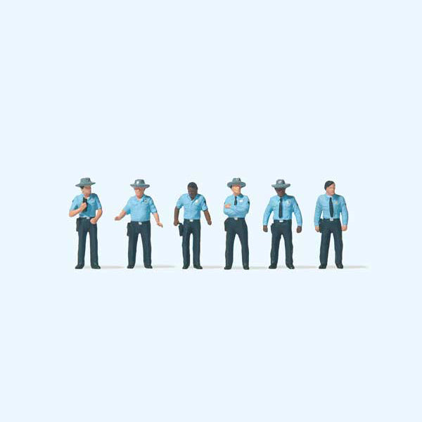 The Preiser HO Scale U.S. Highway Patrolmen figure set includes six men in typical North American-style uniforms. Each set features injection-molded styrene figures molded in realistic poses. Figures are hand painted for extra realism. This U.S. Highway Patrolmen figure set is perfect for adding interest to modern scenes on your layout.