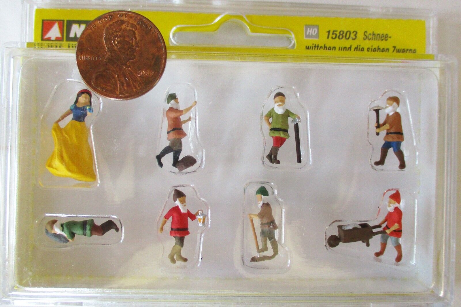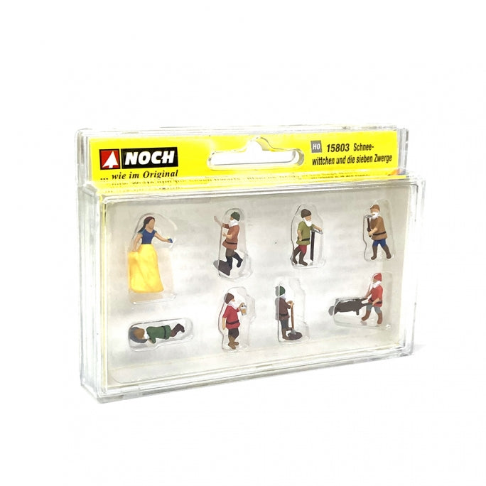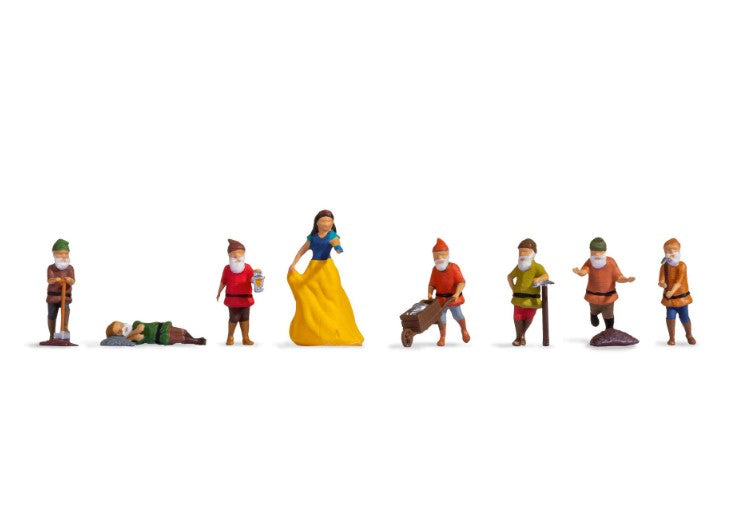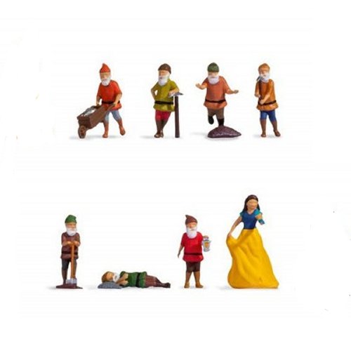 The set for the HO gauge (scale 1:87, approx. 2 cm high) consists of Disney Princess Snow White and Seven Dwarfs - 8 handpainted figures set