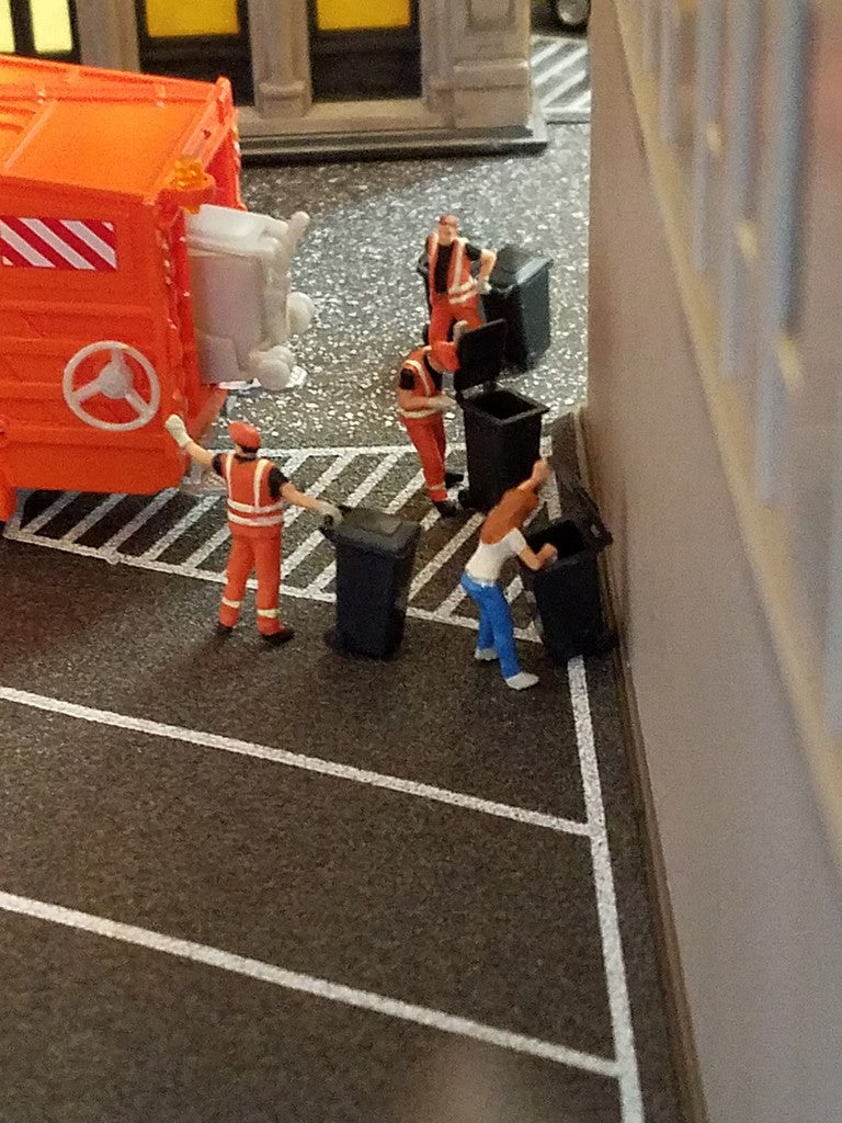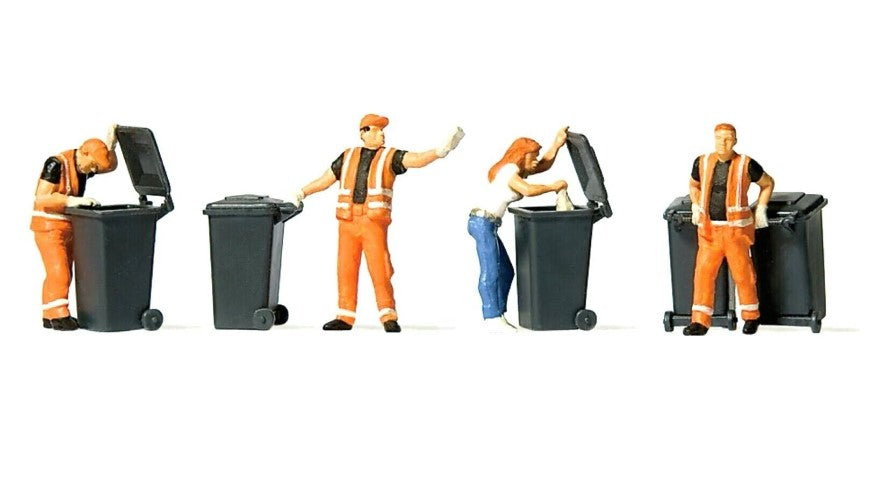 Preiser - Garbage Collection - 4 Figures & 5 Trash Cans
