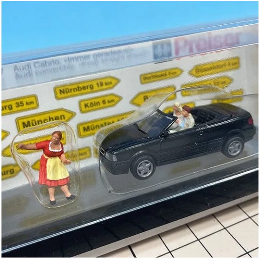 1/87 HO Scale Audi Convertible & 3 Hand Painted Figures