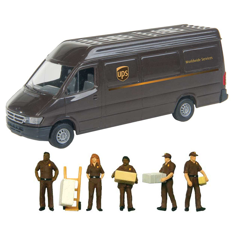 Now its easy to add UPS(R) service to your HO layout with this exciting series of officially licensed replicas from Walthers that includes Cornerstone structure kits, SceneMaster vehicles and figures! Prefect for modern layout scenes, this set delivers six layout-ready figures, handpainted in correct UPS Brown, gold and black, and molded in realistic action poses.