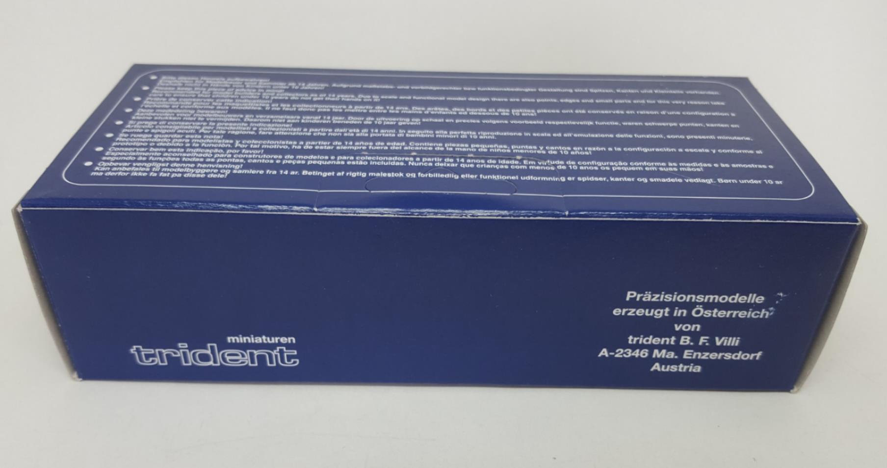 Trident, whose products are imported from Austria by Walthers, was founded in 1966. Their goal was to provide collectors with accurate replicas of prototype vehicles through the use of extensive research, photos and, when possible, original blueprints. Trident offers a wide variety of 1/87 model kits featuring plastic and white-metal parts, as well as a line of military decals.