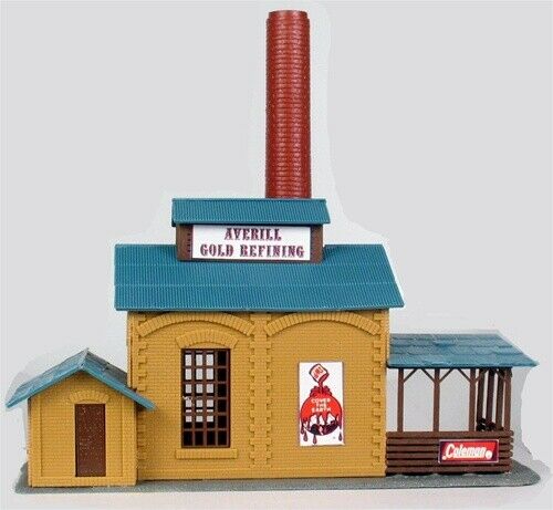 MODEL POWER 576 1/87 HO Scale AVERILL GOLD REFINERY built up LIGHTED + 2 Figures
