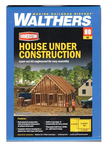 Create a new suburb for your steam- diesel or contemporary layout with this all-new House Under Construction kit from Cornerstone! Typical of post-war designs built all over North America after WWII, and still lived-in today, features of this real-wood, laser-cut kit include: